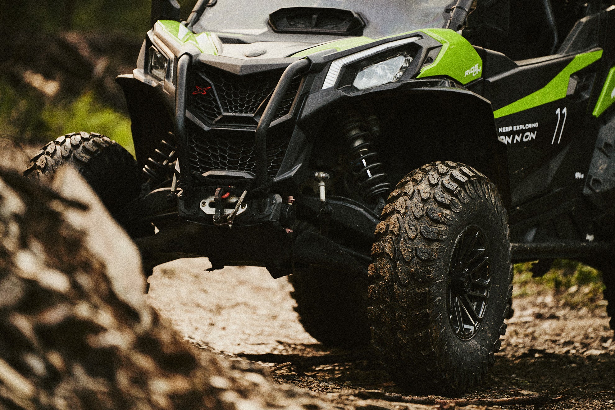 Multi-angle tread and sidewall lugs grip sand, mud, and loose ground with self-cleaning performance.